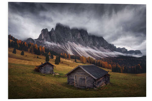 Hartschaumbild Hütten und Wolken in den Dolomiten