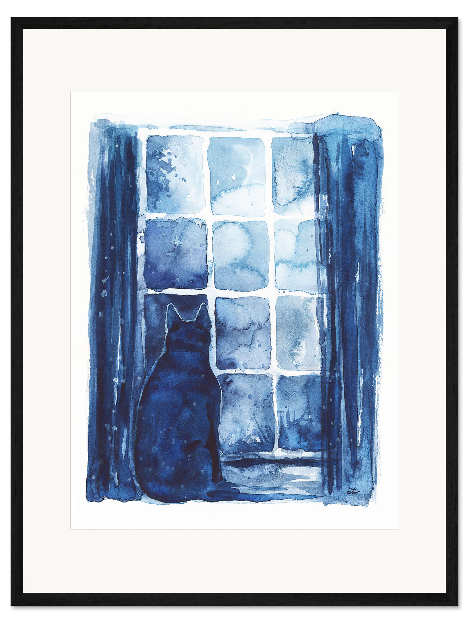 Posterlounge   Wandbilder   Blau   Zaira Dzhaubaeva   Gerahmter Kunstdruck Hund wartet auf Herrchen