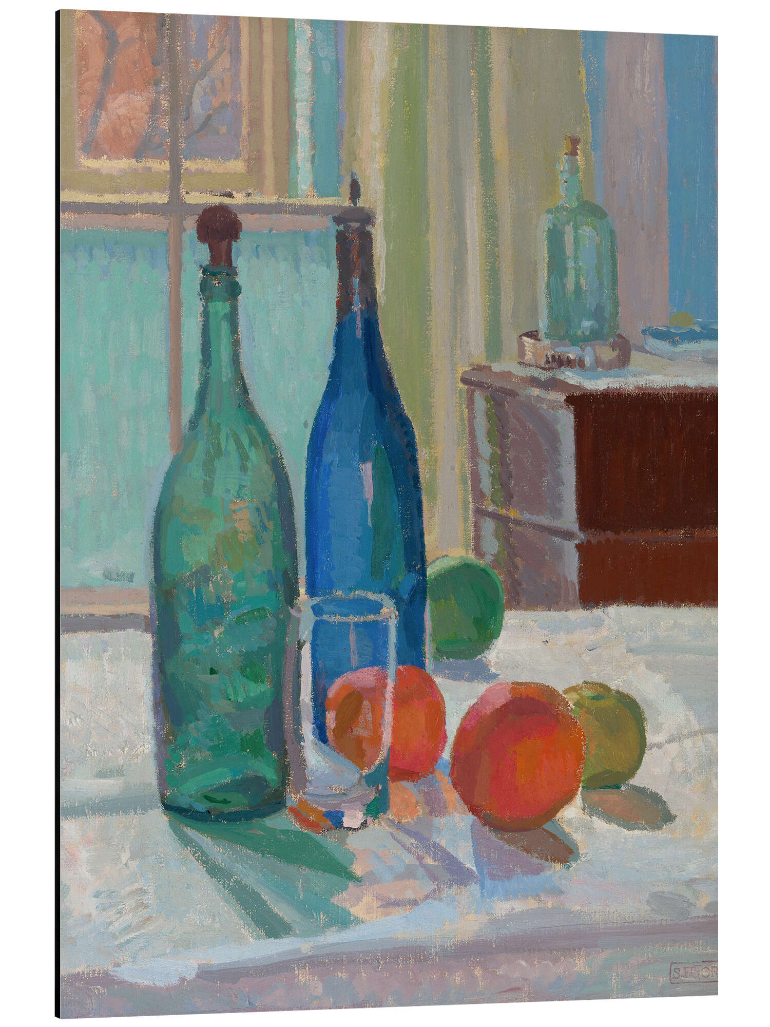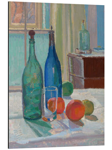 Posterlounge   Wandbilder   Essen & Trinken   Obst   Spencer Frederick Gore   Alubild Blaue und grüne Flaschen und Orangen, 1914