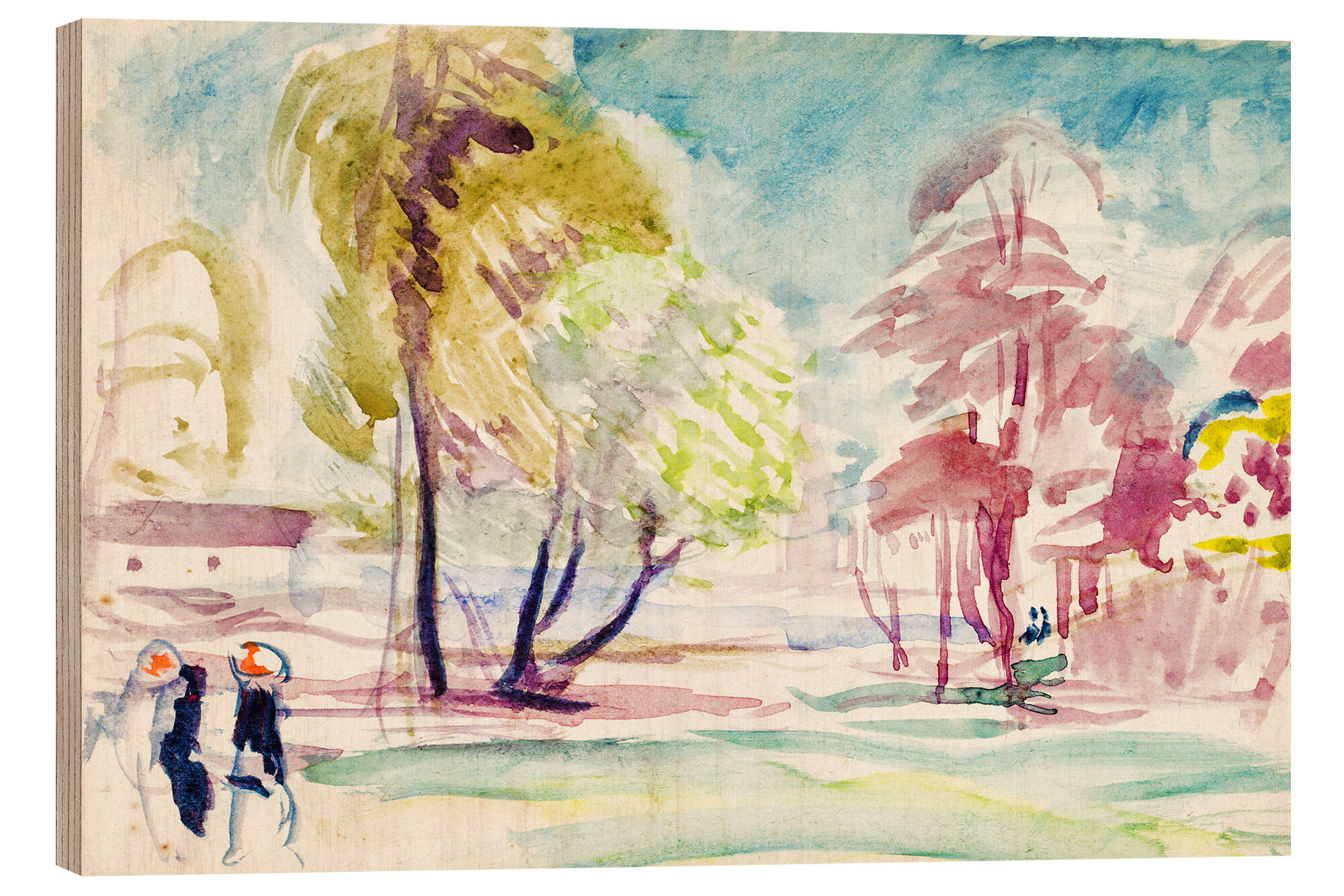 Posterlounge   Wandbilder   Malerei   Aquarell Malerei   Magnus Enckell   Holzbild Stockholm, Landschaft und Figuren, Skizze, 1910