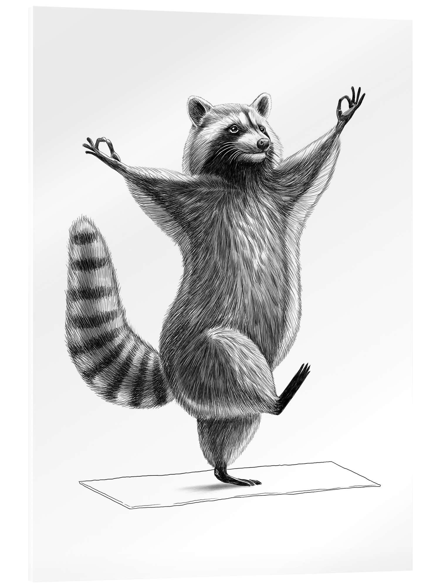 Acrylglasbild Waschbär macht Yoga