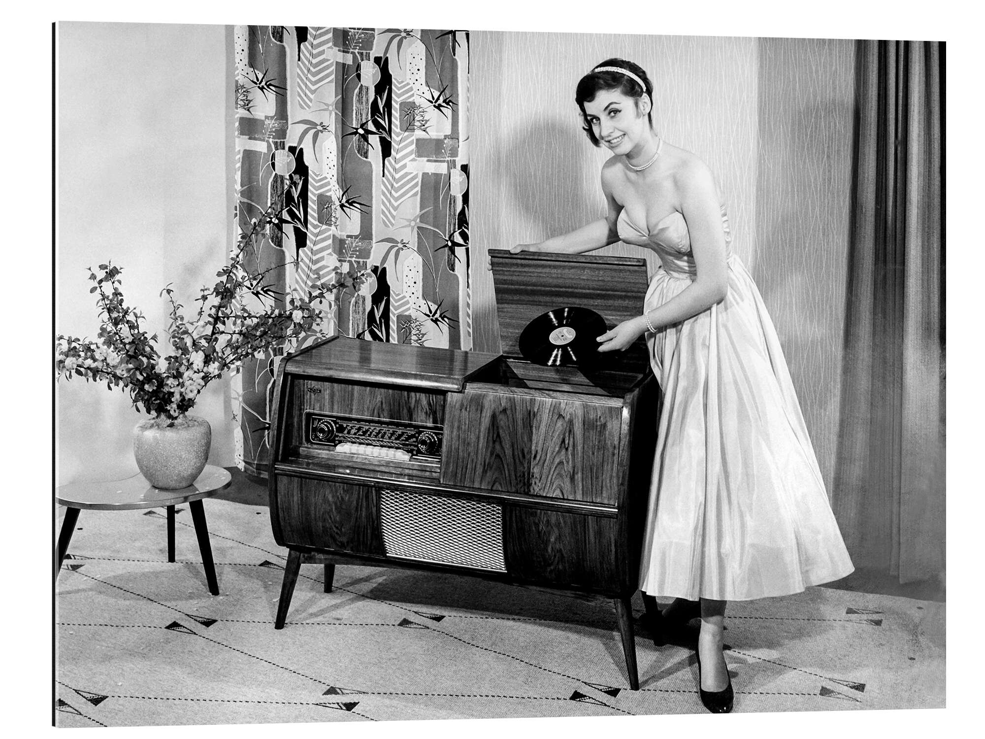 Gallery Print Frau posiert mit Plattenspieler, 1955