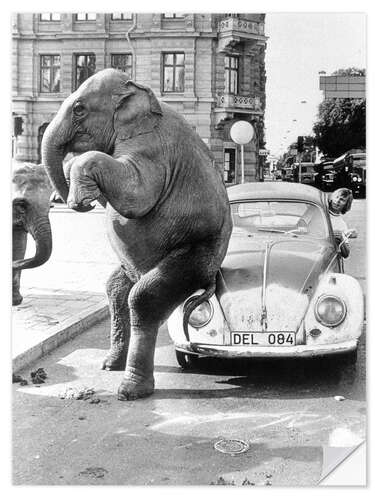Wandsticker Elefant auf Oldtimer, Kuba, 1950er