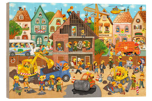 Posterlounge   Wandbilder   Illustration   Marion Krätschmer   Holzbild Fleißige Bauarbeiter
