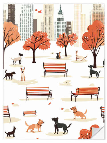 Wandsticker Herbst Stadtpark Hunde