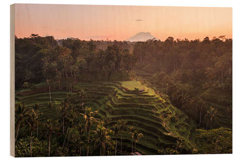 Posterlounge   Wandbilder   Fotografie   Matteo Colombo   Holzbild Reisterrassen und Vulkan auf Bali