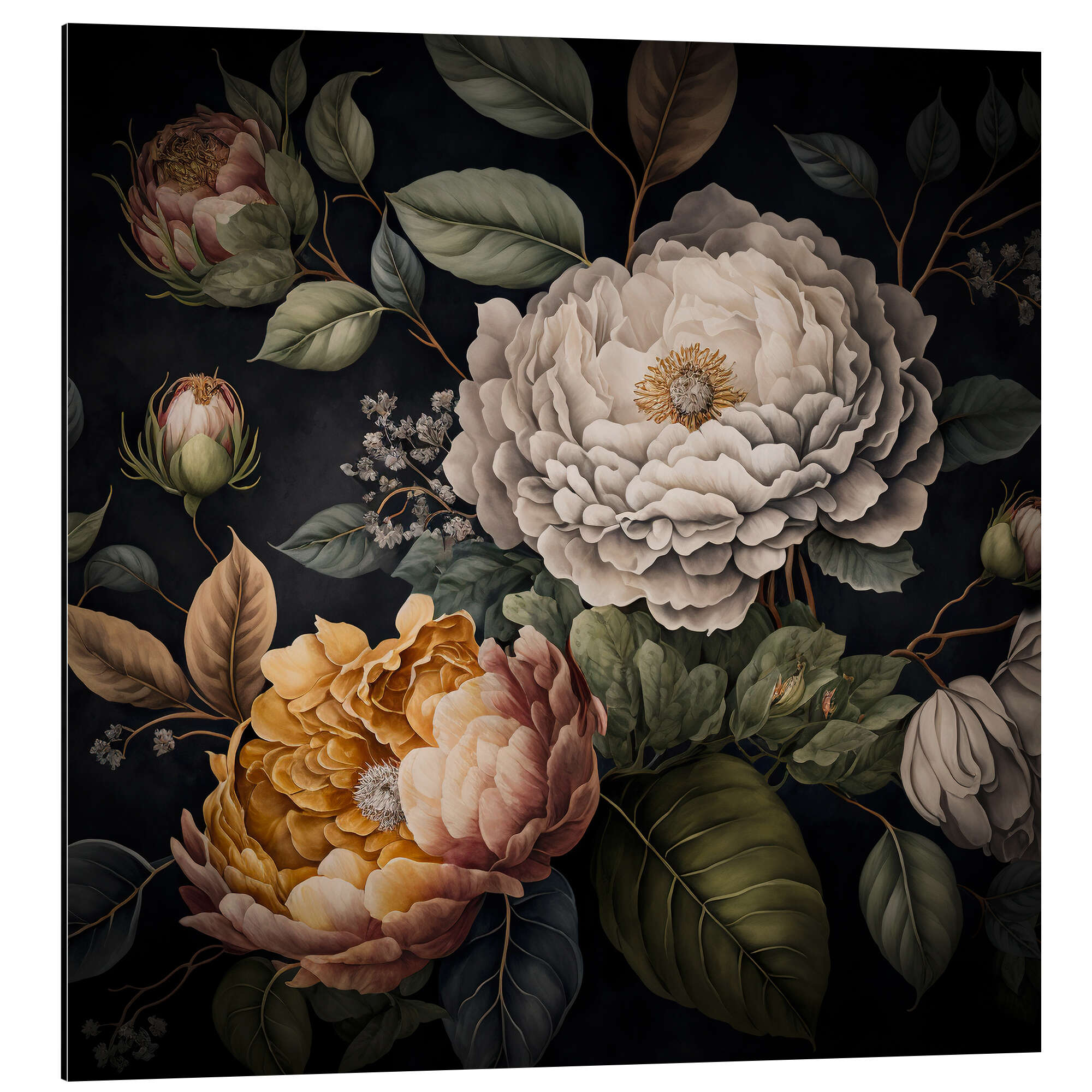 Posterlounge   Wandbilder   Grün   Andrea Haase   Magnettafel Vintage Barock-Pfingstrosen