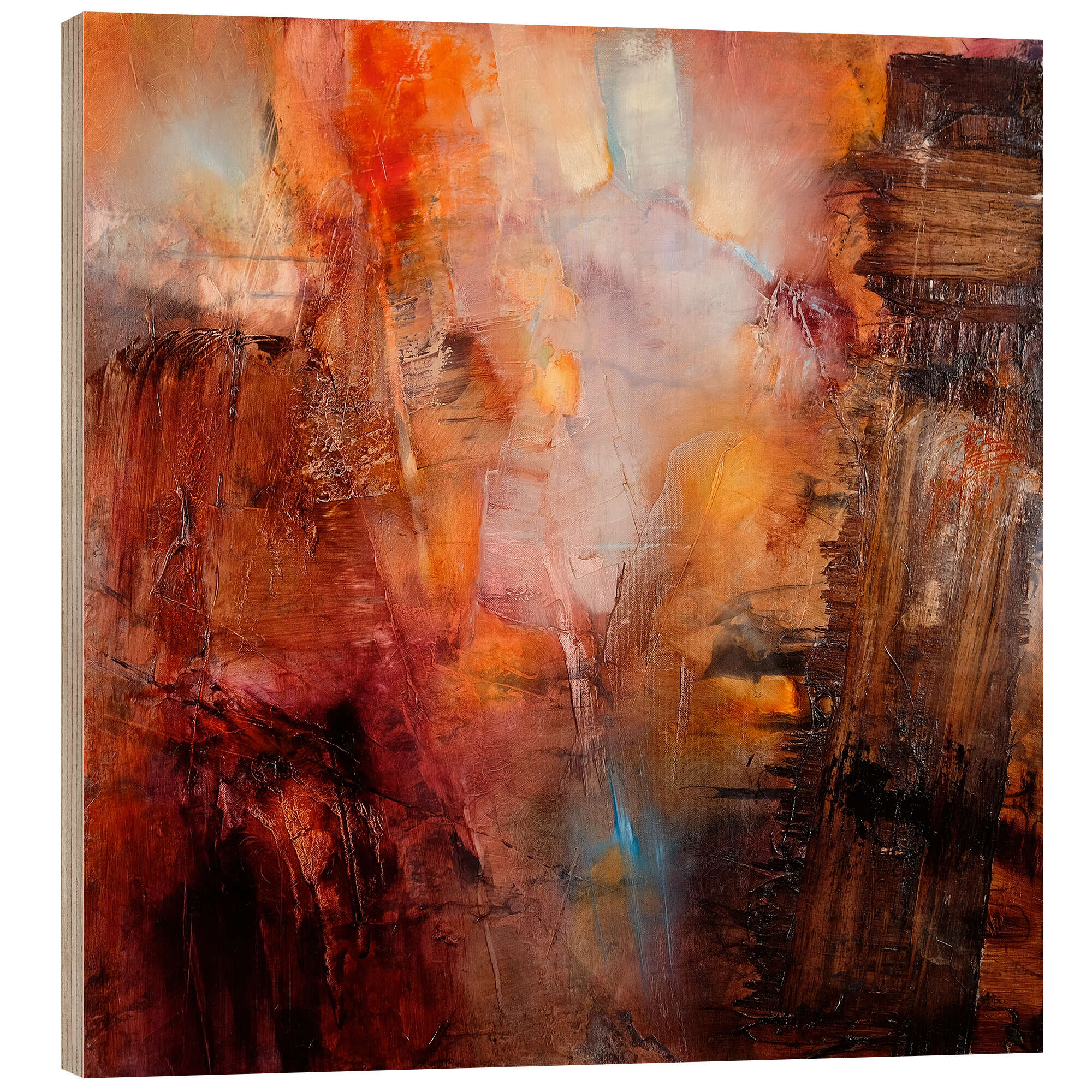 Posterlounge   Wandbilder   Malerei   Abstrakte Kunst   Annette Schmucker   Holzbild Crossing - Rot trifft türkis