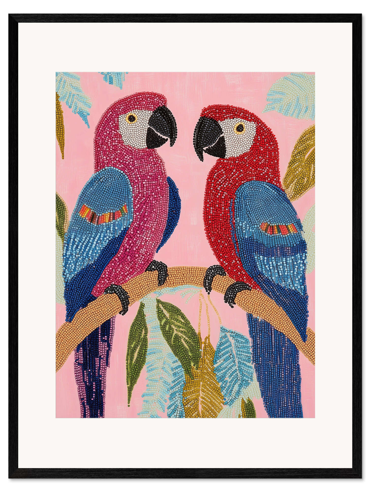 Gerahmter Kunstdruck Papageienpaar