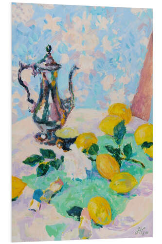 Posterlounge   Wandbilder   Malerei   Hugo Grenville   Hartschaumbild Stillleben mit Zitronen, Kaffeekanne und weißer Rose