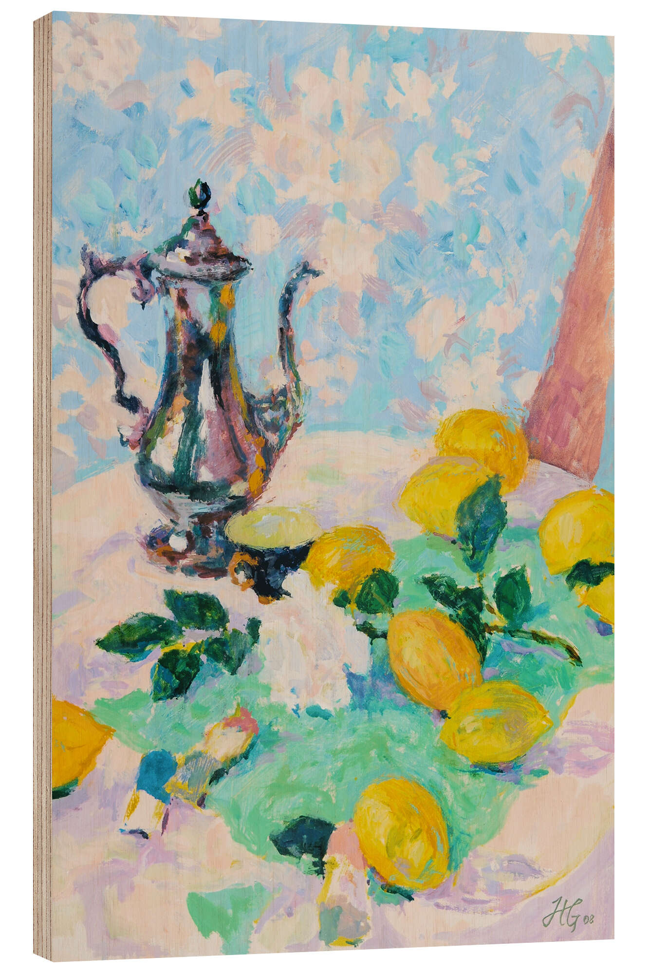 Posterlounge   Wandbilder   Malerei   Hugo Grenville   Holzbild Stillleben mit Zitronen, Kaffeekanne und weißer Rose