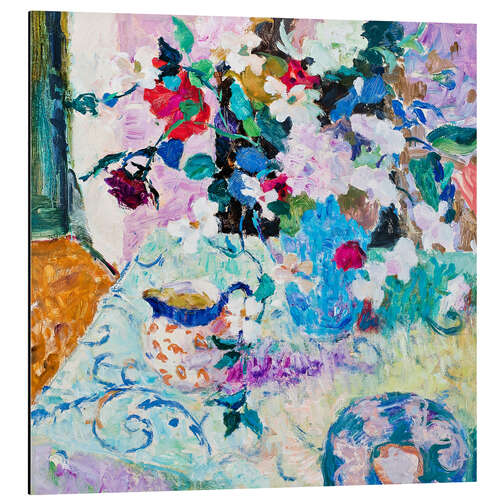 Alubild Stillleben in Blau und Rosa