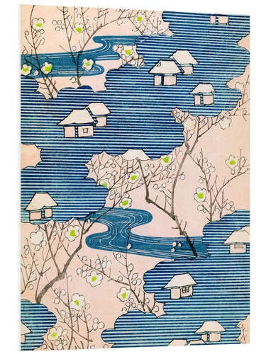 Hartschaumbild Kimono-Design: Cottages mit Flüssen und Kirschblüten