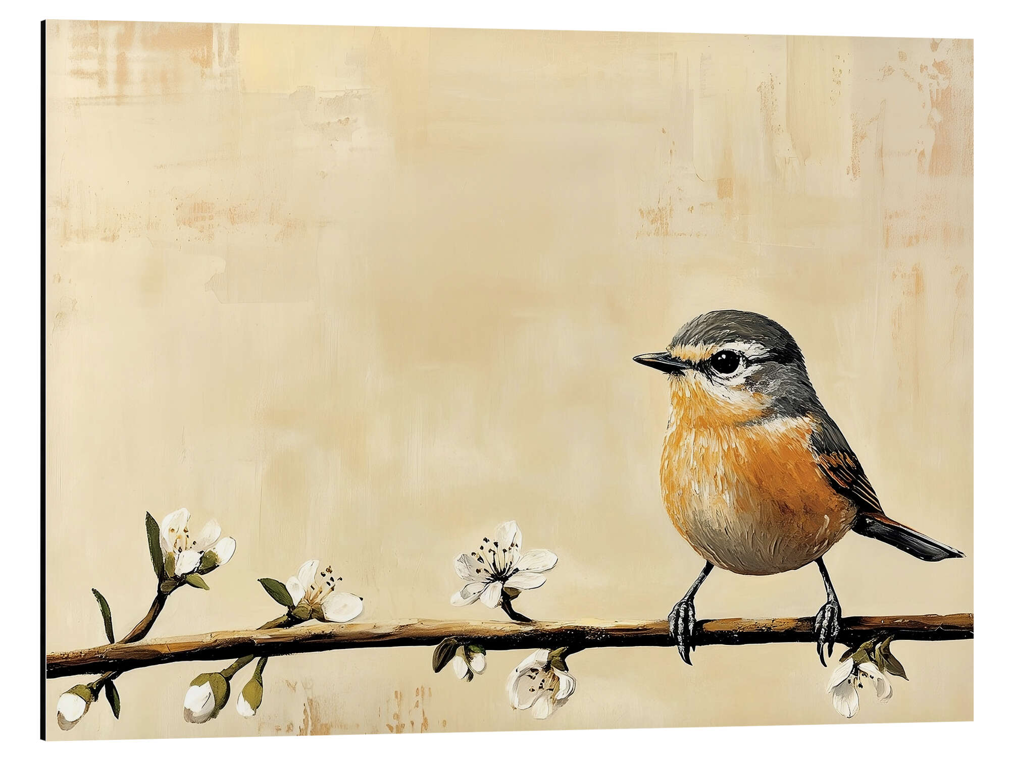 Posterlounge   Wandbilder   Natur   Frühling   TAlex   Alubild Rotkehlchen auf Blumenzweig