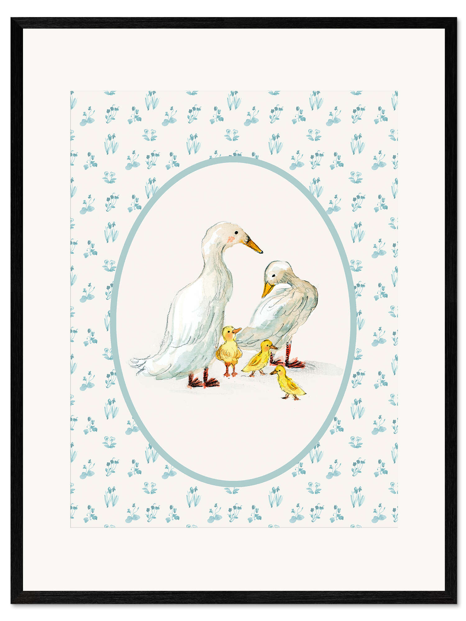 Gerahmter Kunstdruck Entenfamilie im Bauernhaus-Stil