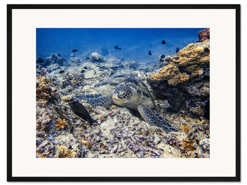 Posterlounge   Wandbilder   Fotografie   HADYPHOTO   Gerahmter Kunstdruck Grüne Meeresschildkröte - Bali, Indonesien