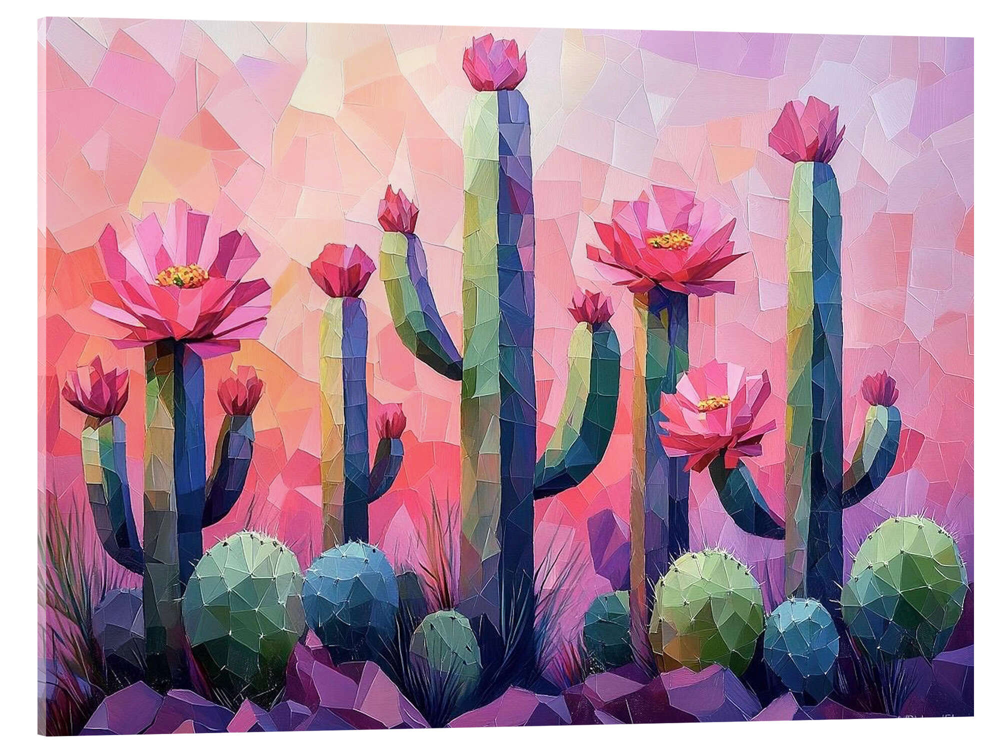 Acrylglasbild Blühende Kakteen auf rosa Hintergrund