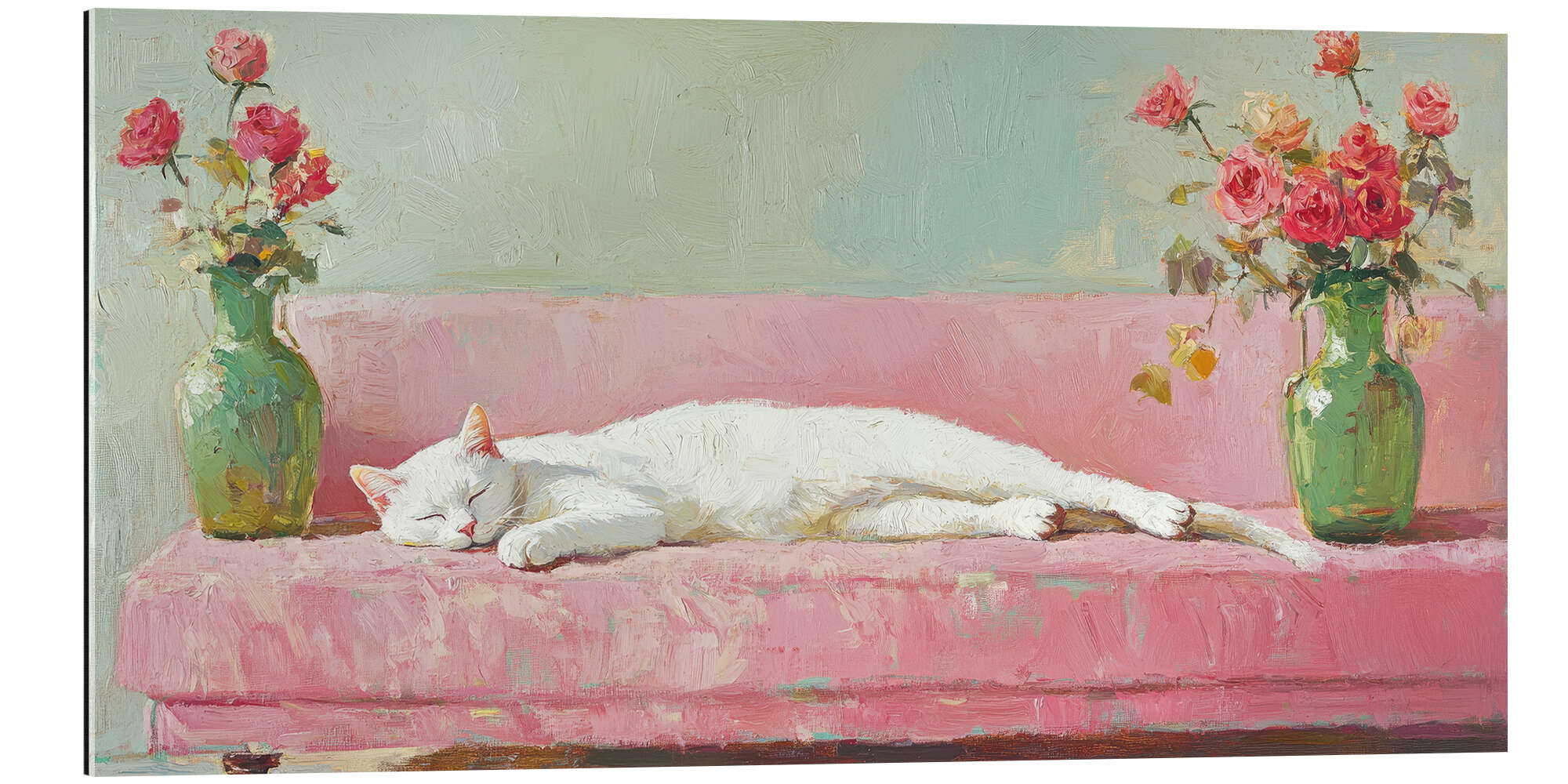 Posterlounge   Wandbilder   Tiere   Haustiere   Katzen   DejaReve   Gallery Print Weiße Katze auf einem rosa Sofa