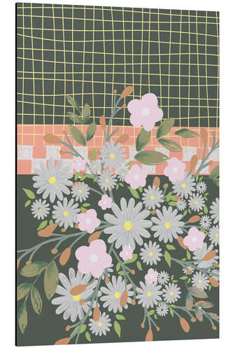 Alubild Gänseblümchen und Blüten mit Gitterhintergrund