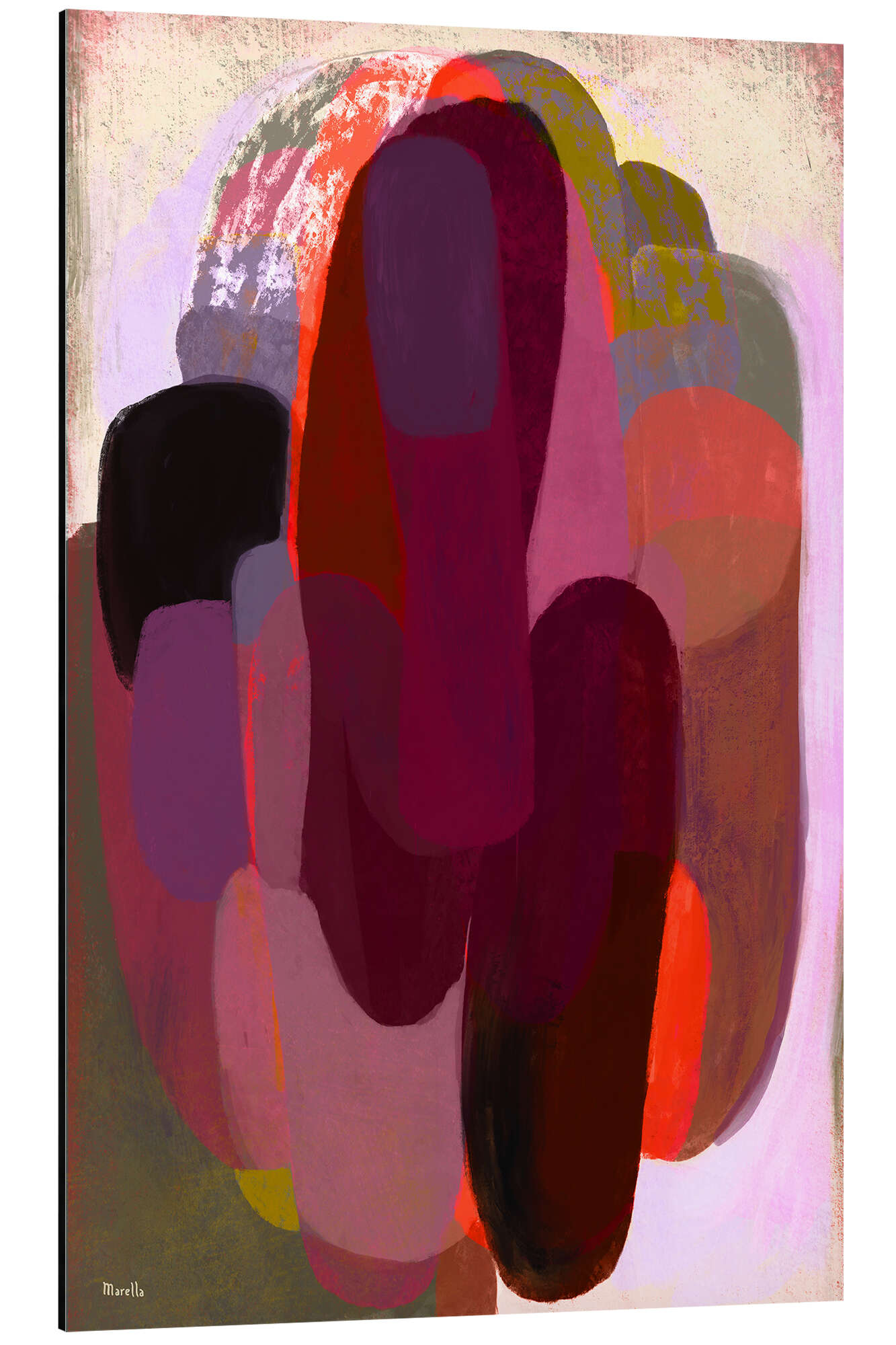 Alubild Abstrakt mit leuchtendem Pink und Dunkelrot