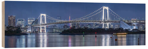 Holzbild Rainbow Bridge bei Nacht, Tokyo, Japan