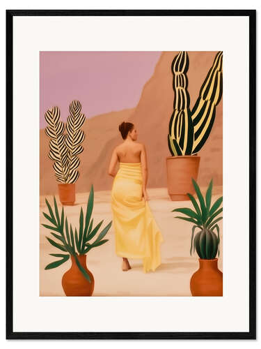 Gerahmter Kunstdruck Frau im Kaktus-Garten