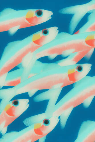 Magnettafel Pastellfarbene Fische im magischen Licht