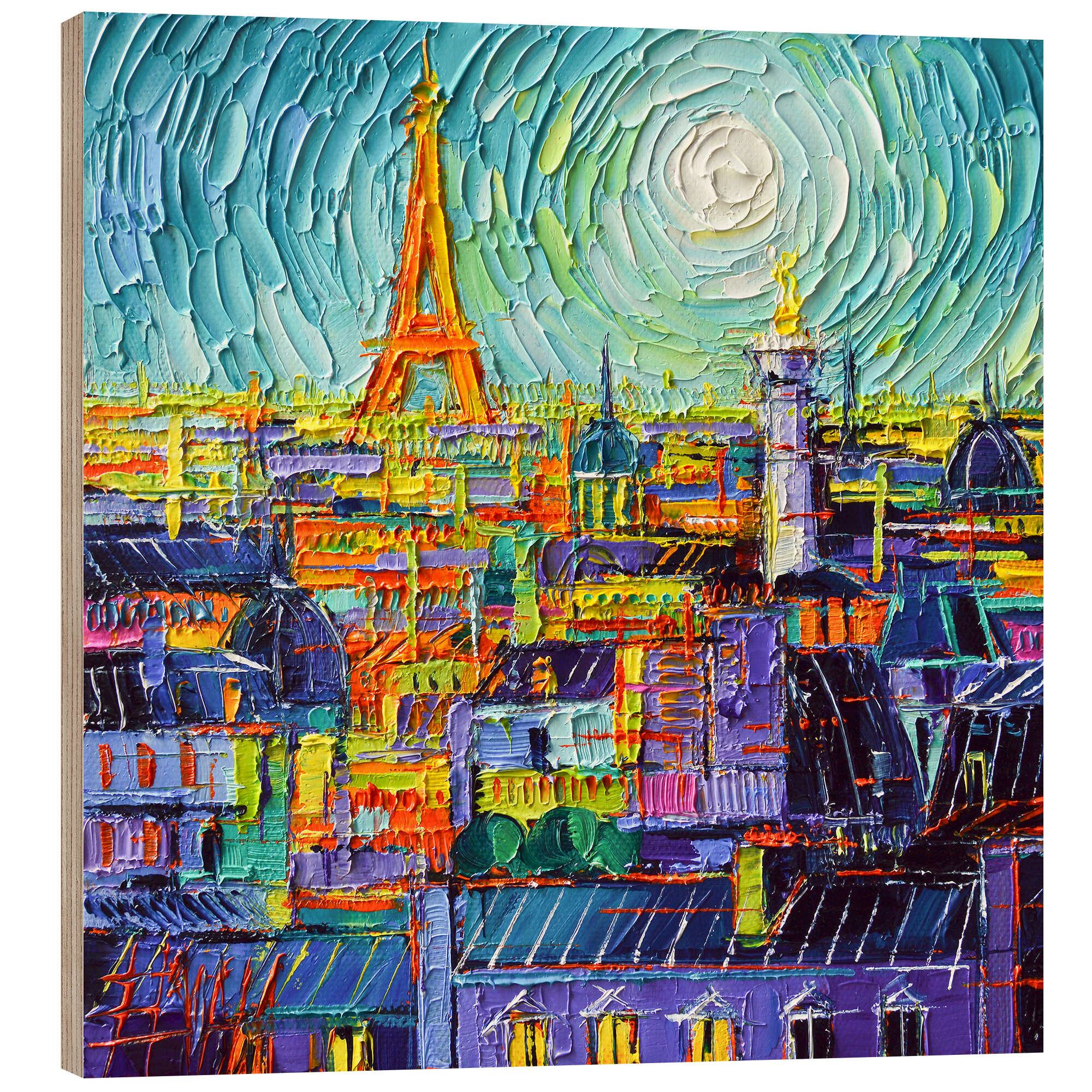 Posterlounge   Wandbilder   Bunt   Mona Edulesco   Holzbild Blick auf die Dächer von Paris und den Eiffelturm
