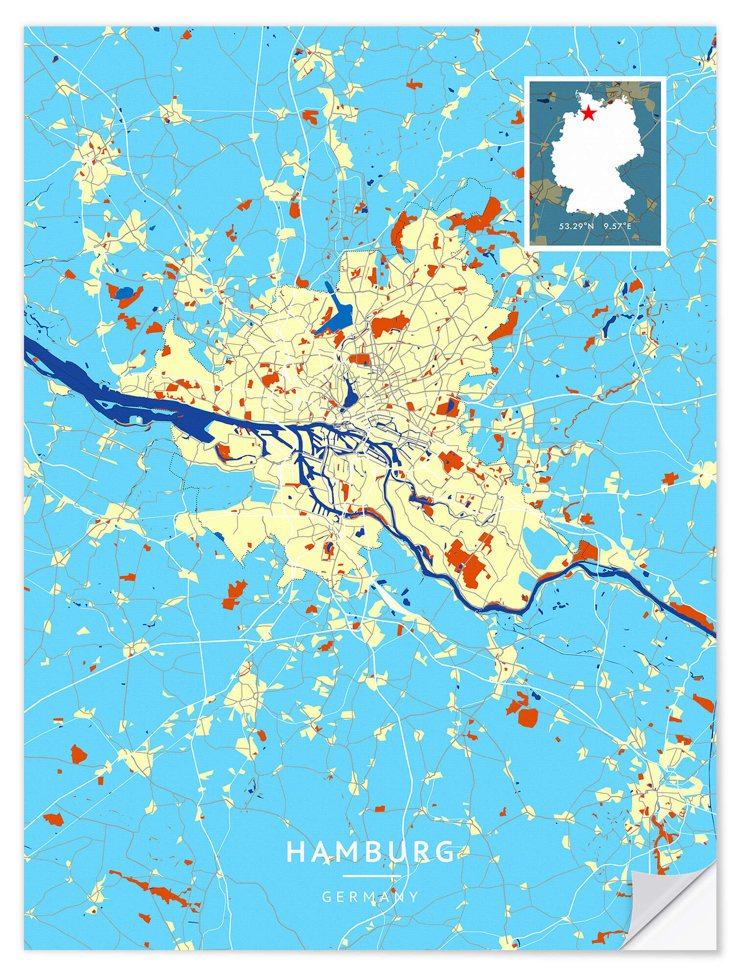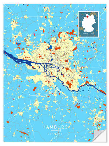 Posterlounge   Wandbilder   Grafikdesign   Map Art   Wandsticker Hamburg, Deutschland