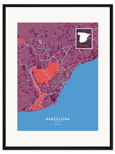 Posterlounge   Wandbilder   Grafikdesign   Map Art   Gerahmter Kunstdruck Barcelona, Spanien