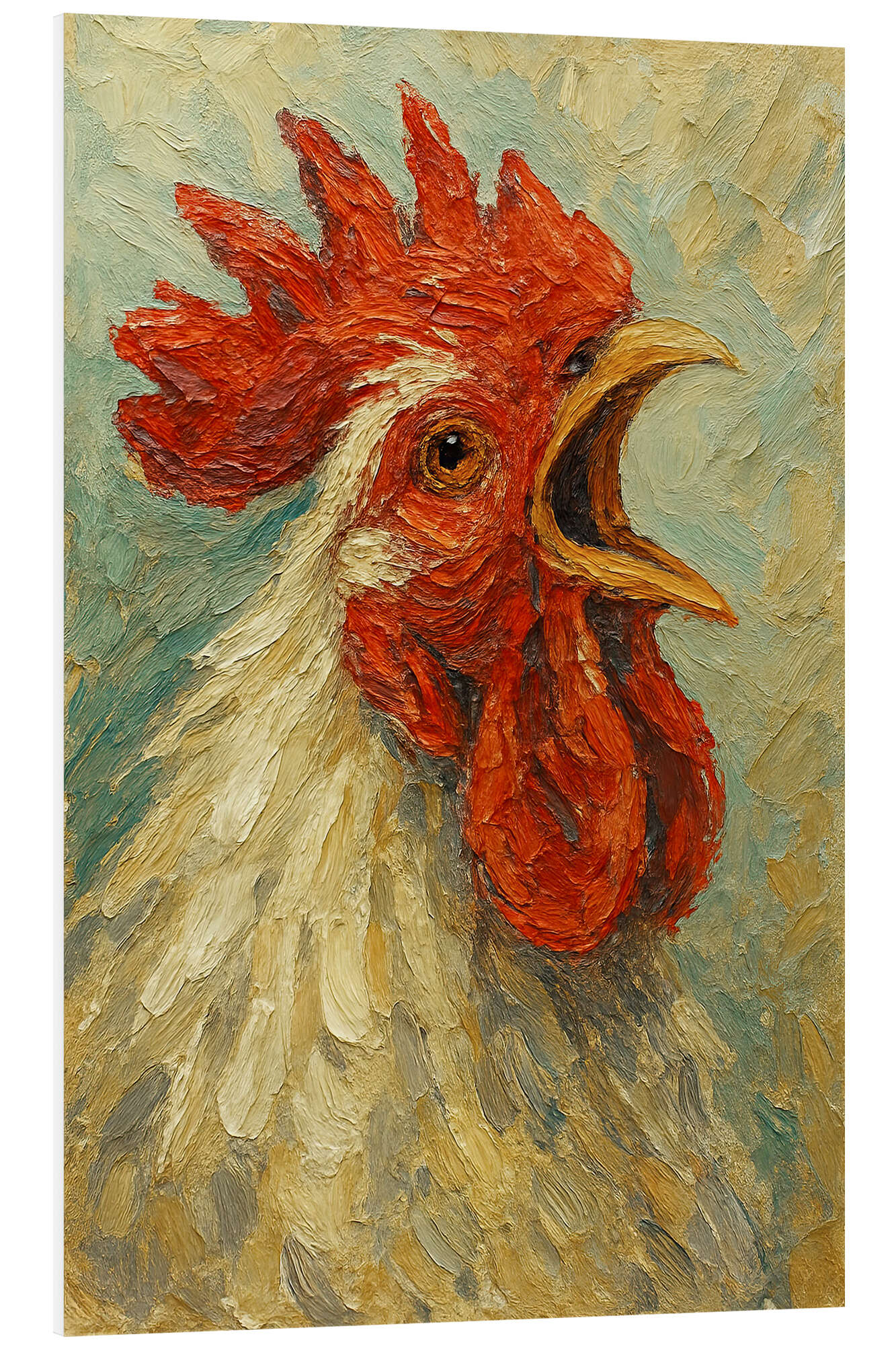 Hartschaumbild Der krähende weiße Hahn