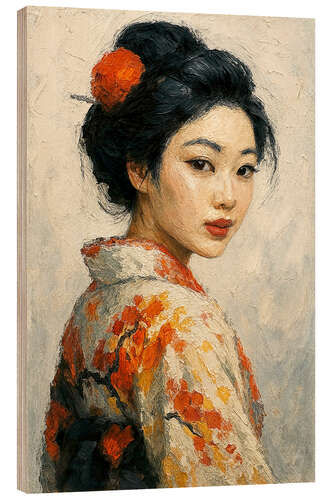 Holzbild Die japanische Geisha blickt über ihre Schulter