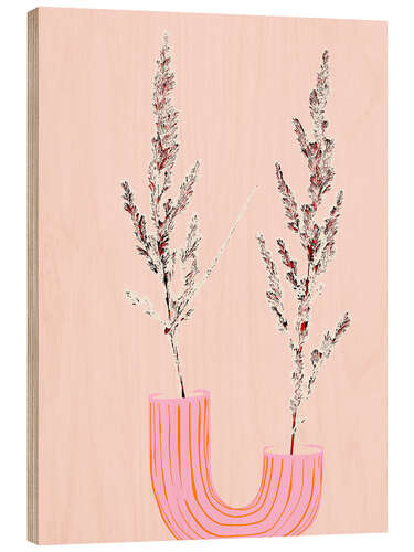 Posterlounge   Wandbilder   Rosé   Annick   Holzbild Stillleben mit Gräsern in einer pinken Vase
