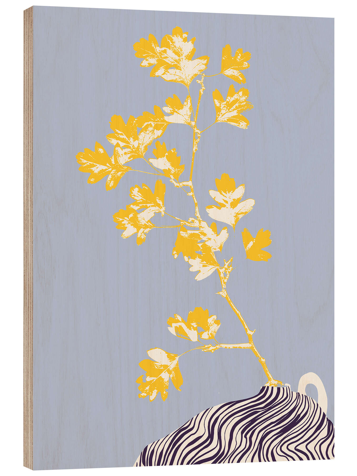 Posterlounge   Wandbilder   Blau   Annick   Holzbild Stillleben mit gelbem Weißdornzweig