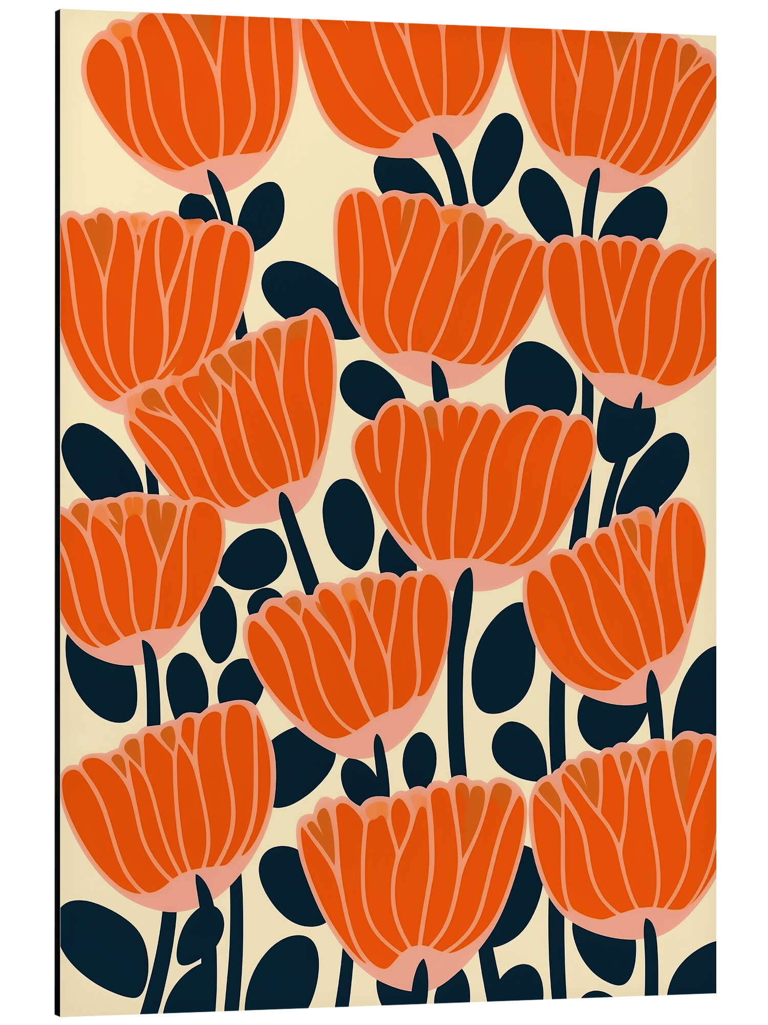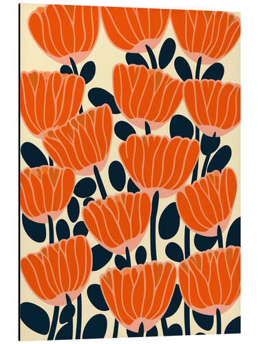Posterlounge   Wandbilder   Rot   Frank Daske   Magnettafel Mohnblumen-Muster im Mid-Century Stil
