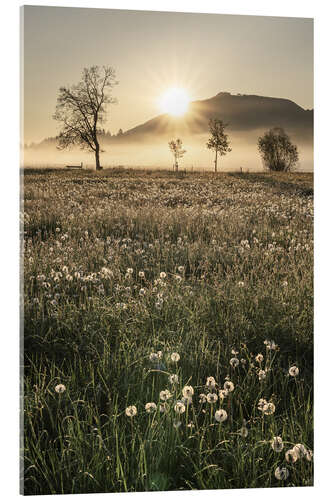 Acrylglasbild Wiesen im Nebel, Allgäu