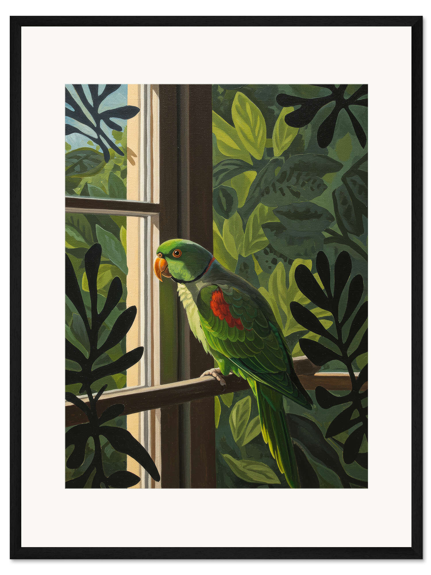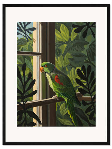 Posterlounge   Wandbilder   Grün   Felipe Hora   Gerahmter Kunstdruck Papagei beim Sonnenaufgang