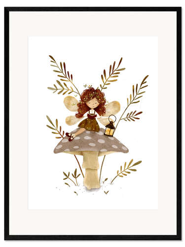 Gerahmter Kunstdruck Bücherfee auf einem Pilz