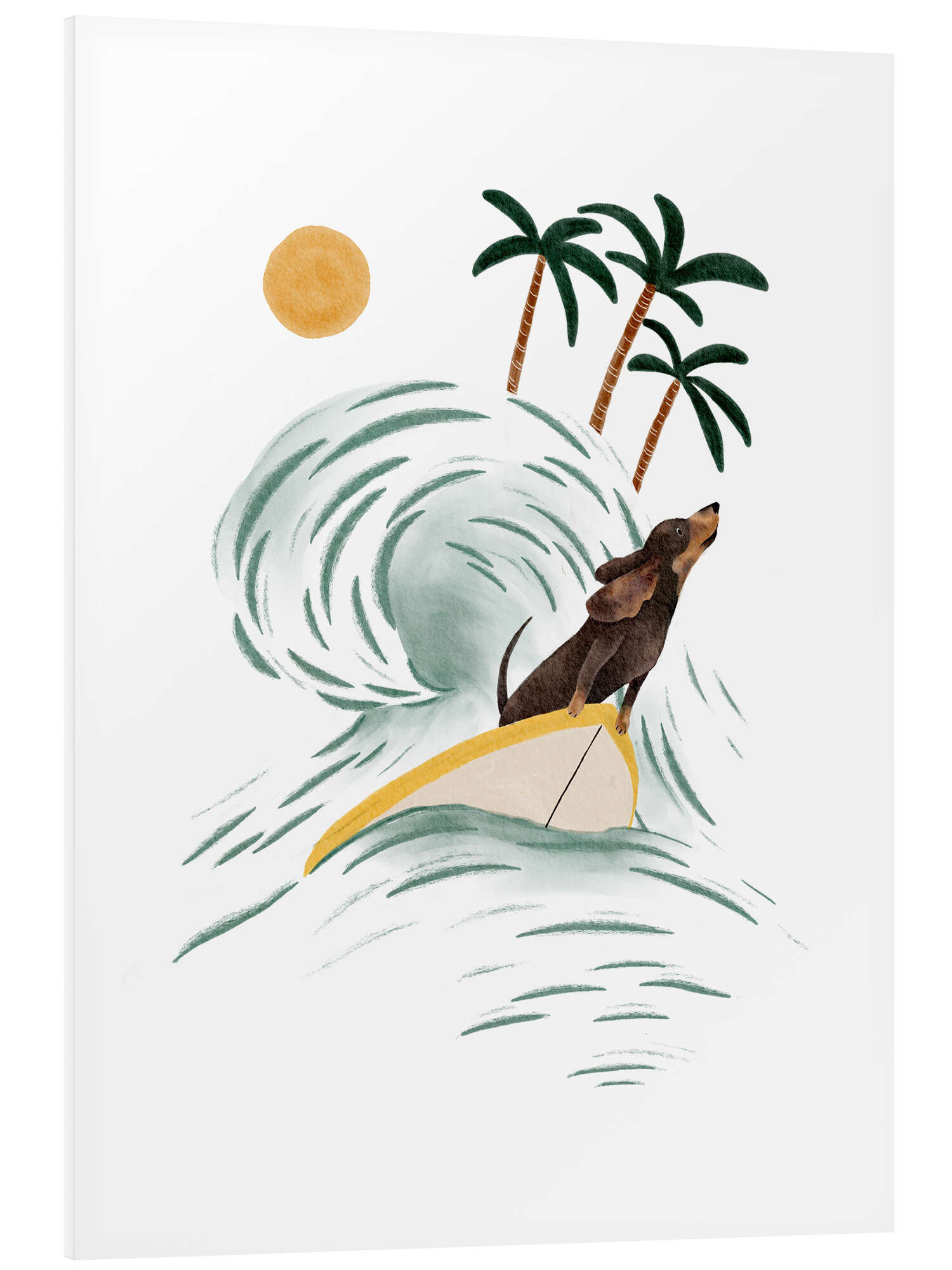 Hartschaumbild Dackel beim Surfen