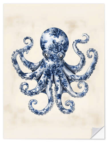 Wandsticker Blauer Floraler Krake