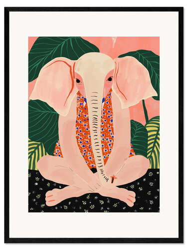 Gerahmter Kunstdruck Yoga meditierender Elefant