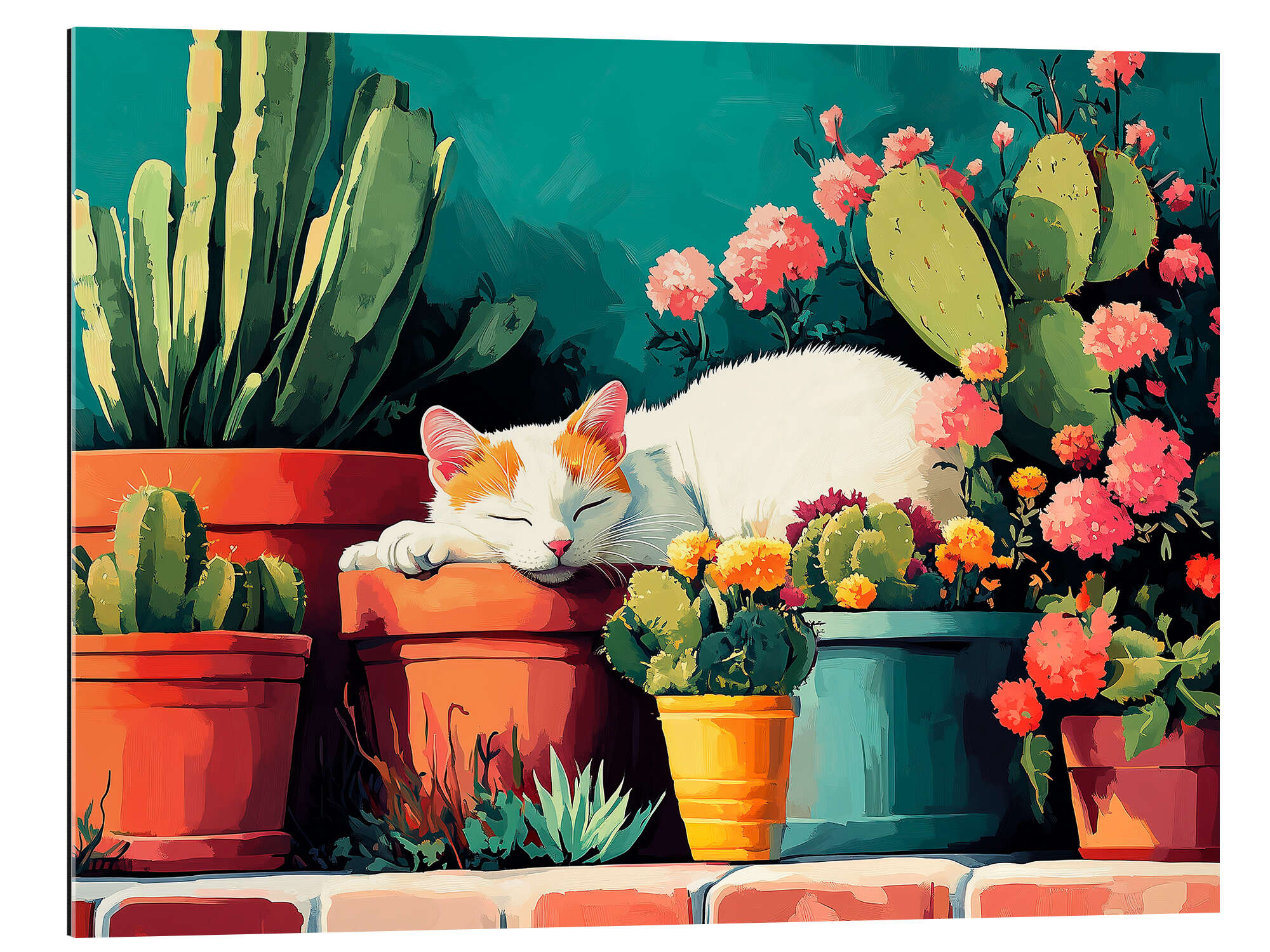 Gallery Print Schlafende Katze auf einer sonnigen Terrasse