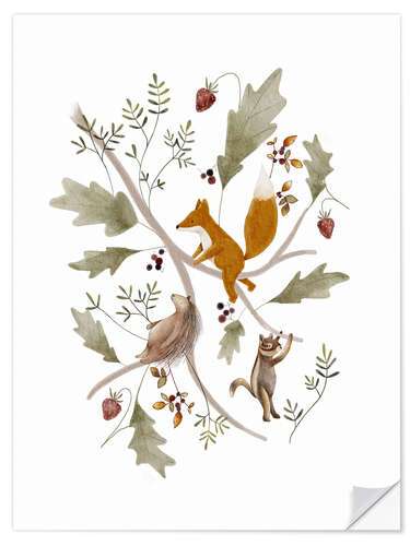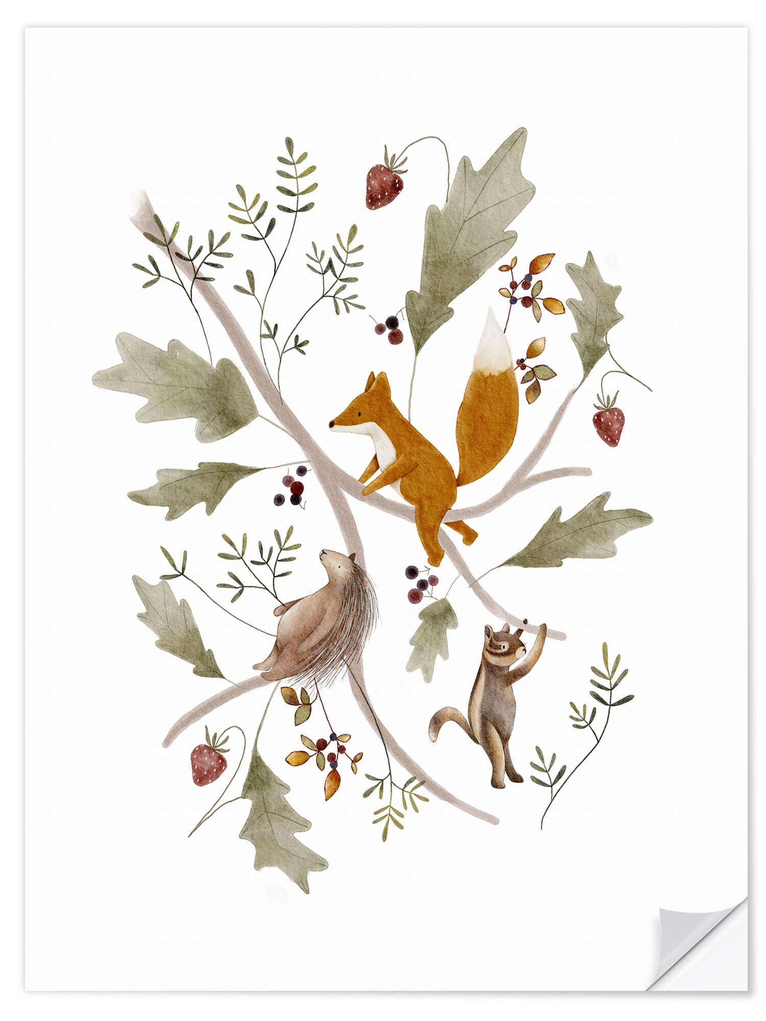 Wandsticker Beerenzweig mit Tieren