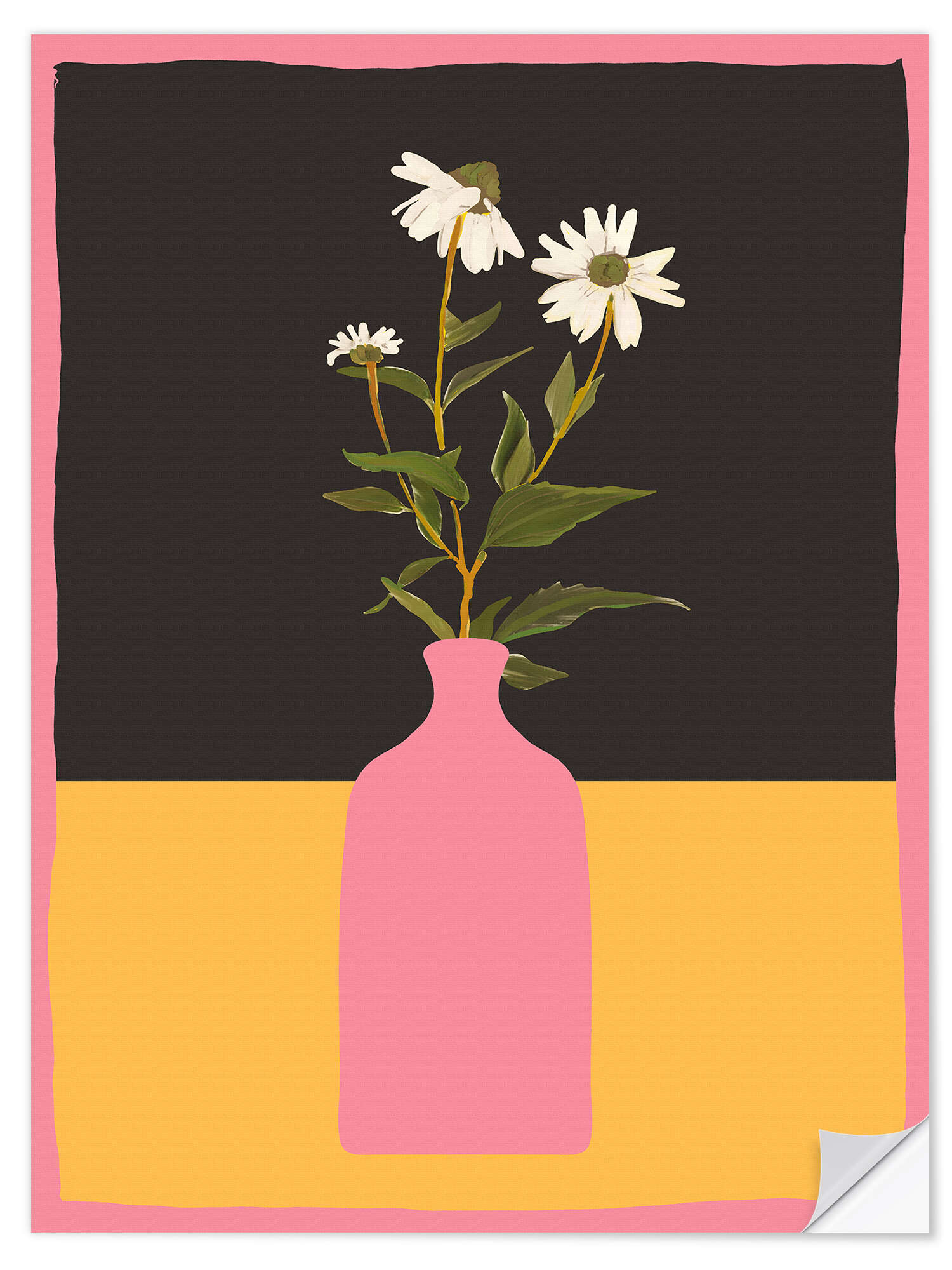 Wandsticker Gänseblümchen in rosa Vase