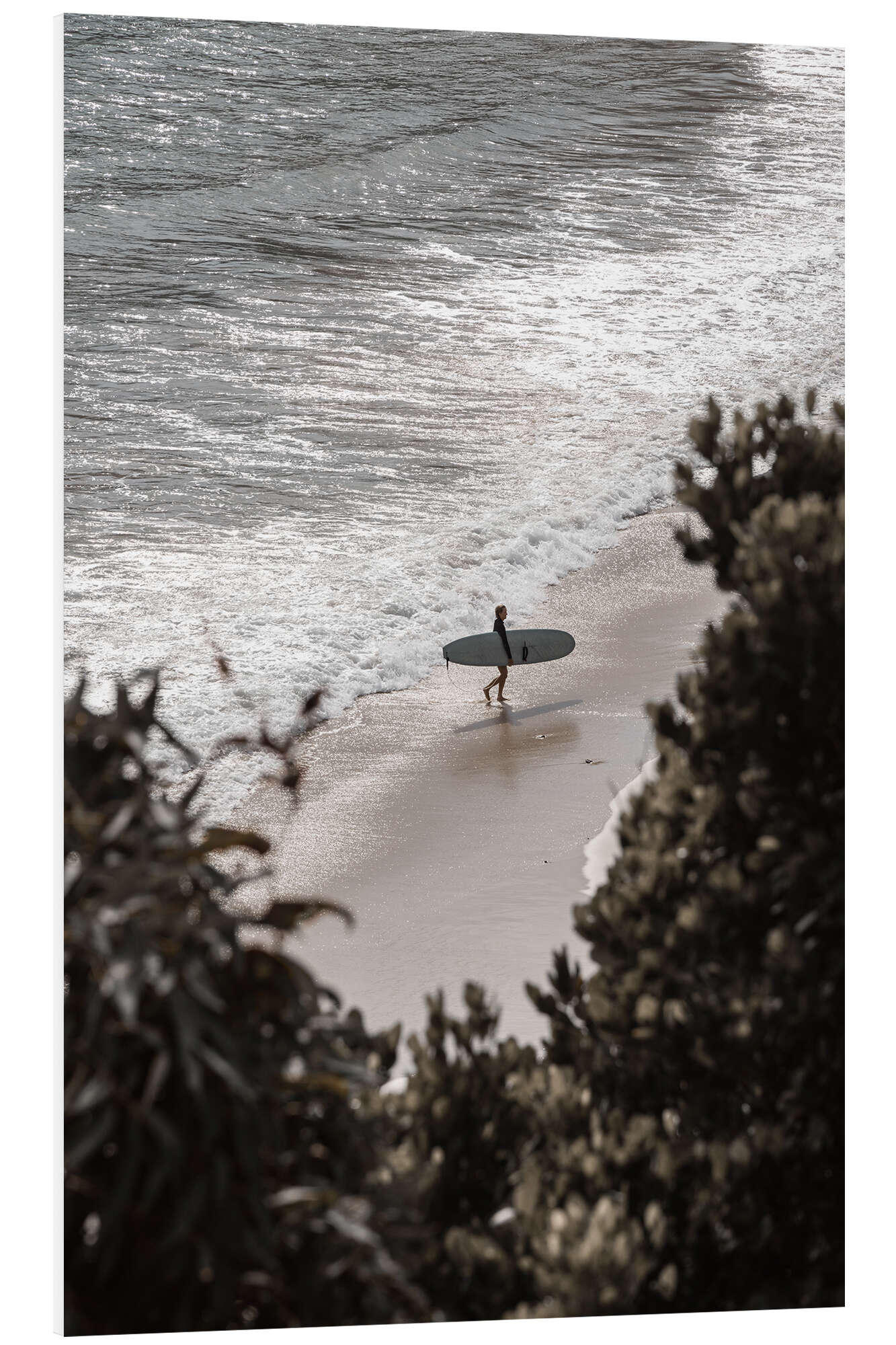 Hartschaumbild Surfer mit Surfbrett am Strand