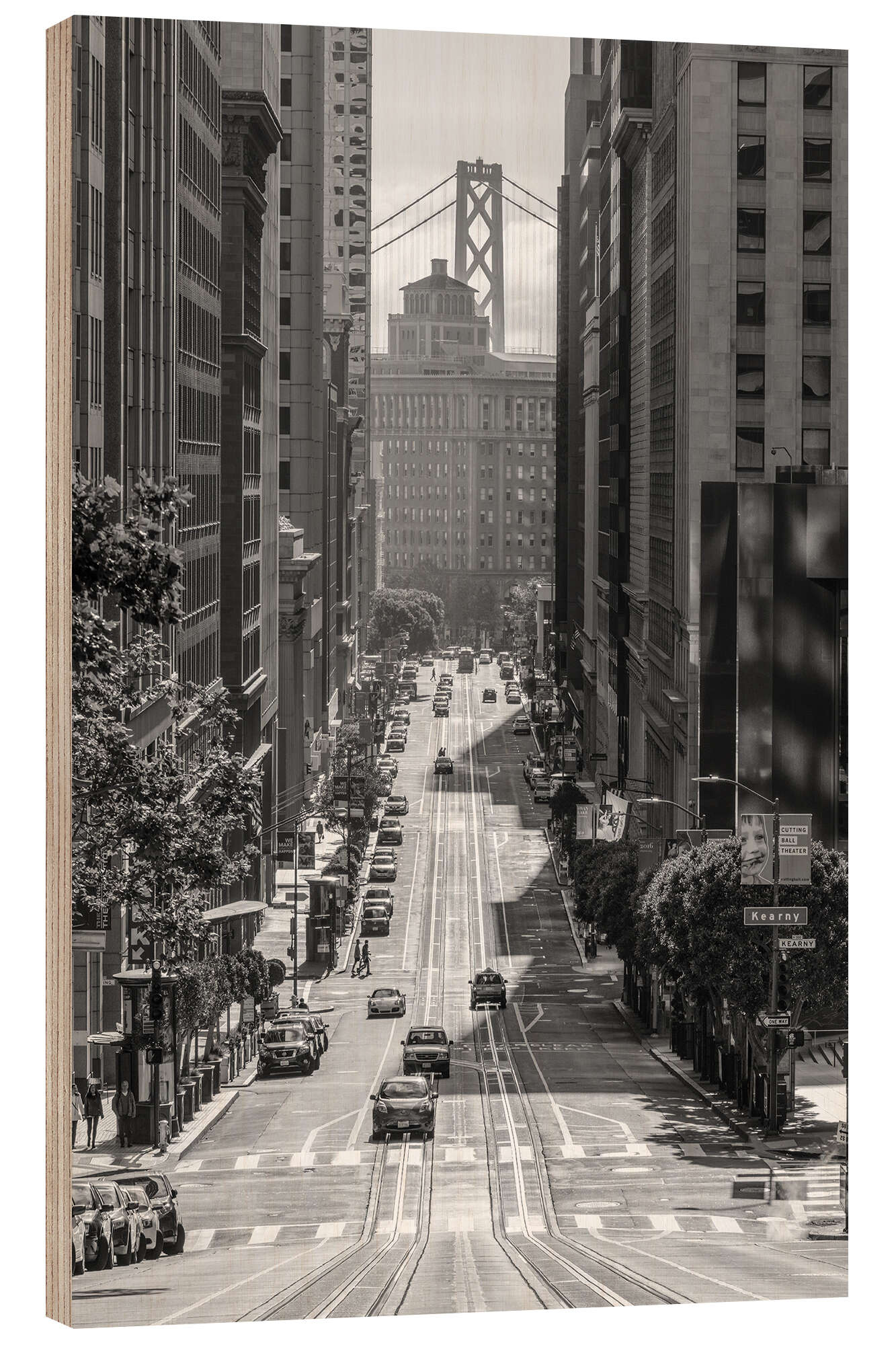 Holzbild California Street und Bay Bridge, San Francisco