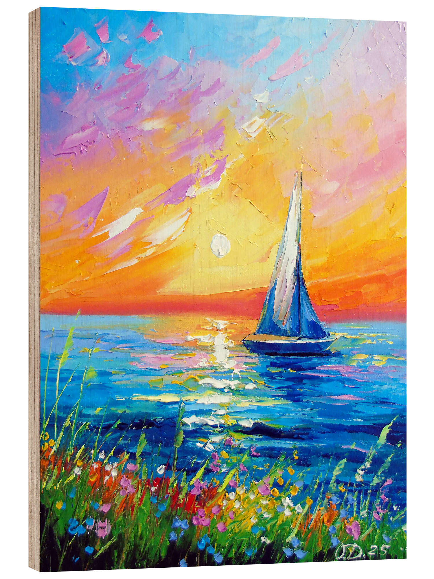 Posterlounge   Wandbilder   Blau   Olha Darchuk   Holzbild Morgendämmerung und Segelboot