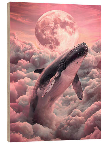 Posterlounge   Wandbilder   Tiere   Meerestiere   Wale   nobelart   Holzbild Wal in den Wolken mit Mond
