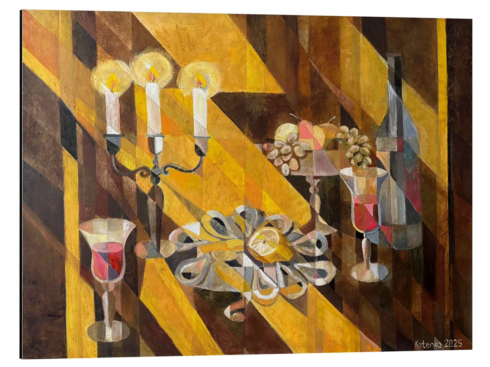 Alubild Stilleben mit Austern und Kerzen