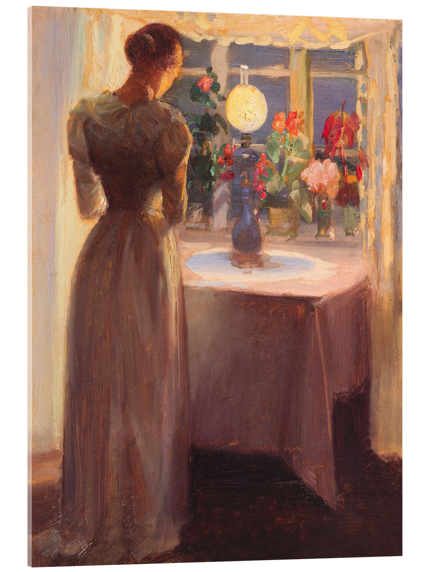 Acrylglasbild Junges Mädchen vor einer brennenden Lampe